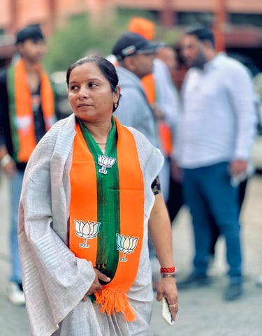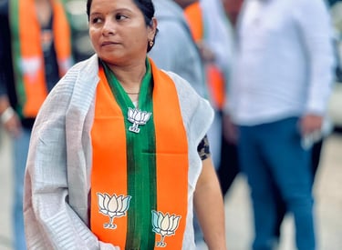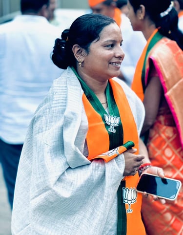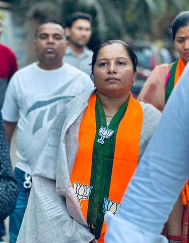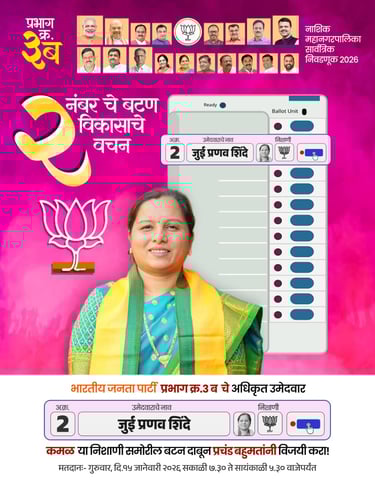 Jui Shinde stands proudly as the BJP candidate for Prabhag No. 3 (B), committed to serving her community.